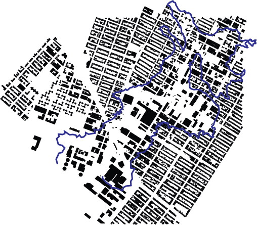 Our process began by looking at the natural estuary that originally formed a series of ponds and creeks that later became the Gowanus Canal. When the outline of the fertile land of the tidal marsh basin was laid over the grid of today, the result boldly highlighted the abrupt change in building scale from tight row houses to large industrial space. The correlation made sense given that the estuary soil was once prime for farming and likely developed long after the surrounding residential neighborhoods. It seemed appropriate to use this violent shift in built form as the definition of our site for a new urban intervention.